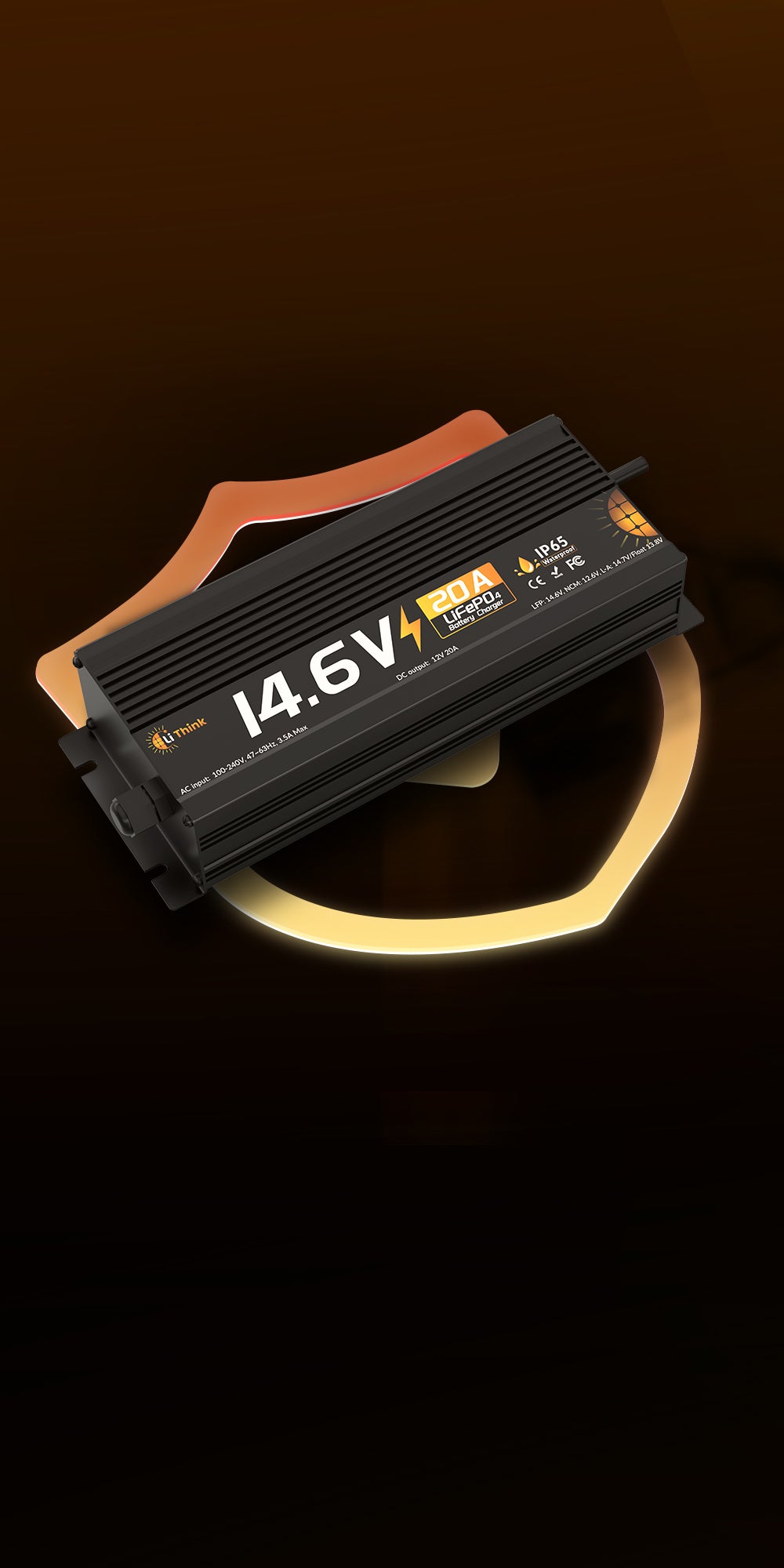 Das Lithink-Ladegerät 14,6 V 20 A basiert auf demselben Sicherheitskonzept wie das 10 A-Modell und wurde für höhere Leistung zusätzlich verstärkt. Es verfügt über umfassende Schutzfunktionen wie Übertemperatur-, Kurzschluss-, Überspannungs- und Verpolungsschutz, die während des Ladevorgangs in Echtzeit eingreifen. Steigt die Temperatur zu stark an, reduziert oder pausiert das Gerät dank seines Wärmemanagements automatisch den Strom, bis es wieder abgekühlt ist. Ein robustes, wasser- und staubdichtes Gehäuse (einige Ausführungen IP65) schützt die Elektronik auch unter rauen Bedingungen. Insgesamt sorgt diese Mehrfachabsicherung dafür, dass das 20 A-Ladegerät trotz hoher Ausgangsleistung sicher und zuverlässig arbeitet – ideal zum Laden großer LiFePO₄-Batterien.