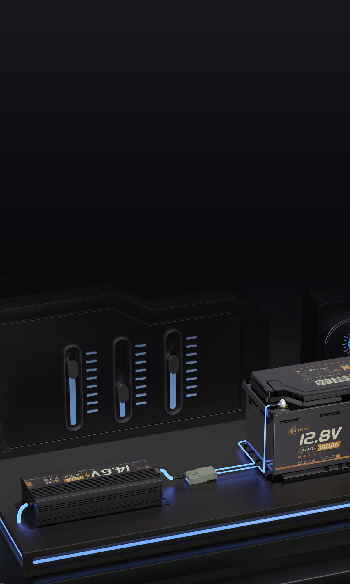 Das Lithink 14,6V 20A Ladegerät ist für 12.8V Lithium-Eisenphosphat-Batterien konzipiert und mit allen 12.8V-Modellen von Lithink kompatibel – einschließlich größerer Kapazitäten wie 100Ah, 150Ah, 200Ah usw.. Im Vergleich zum 10A-Ladegerät ist die 20A-Variante besonders für mittelgroße bis große Batterien (etwa 50Ah und mehr) geeignet. So lässt sich zum Beispiel eine Lithink 12.8V 100Ah Batterie in ungefähr 5 Stunden vollständig aufladen. Noch größere Batterien, etwa 200Ah, werden entsprechend schneller geladen (eine 200Ah-Batterie wäre in etwa 10 Stunden voll). Allgemein lädt das 14,6V 20A Ladegerät alle 12.8V LiFePO4-Batterien von Lithink effizient auf – seinen Geschwindigkeitsvorteil spielt es besonders bei Batterien ab circa 50Ah Kapazität aus.