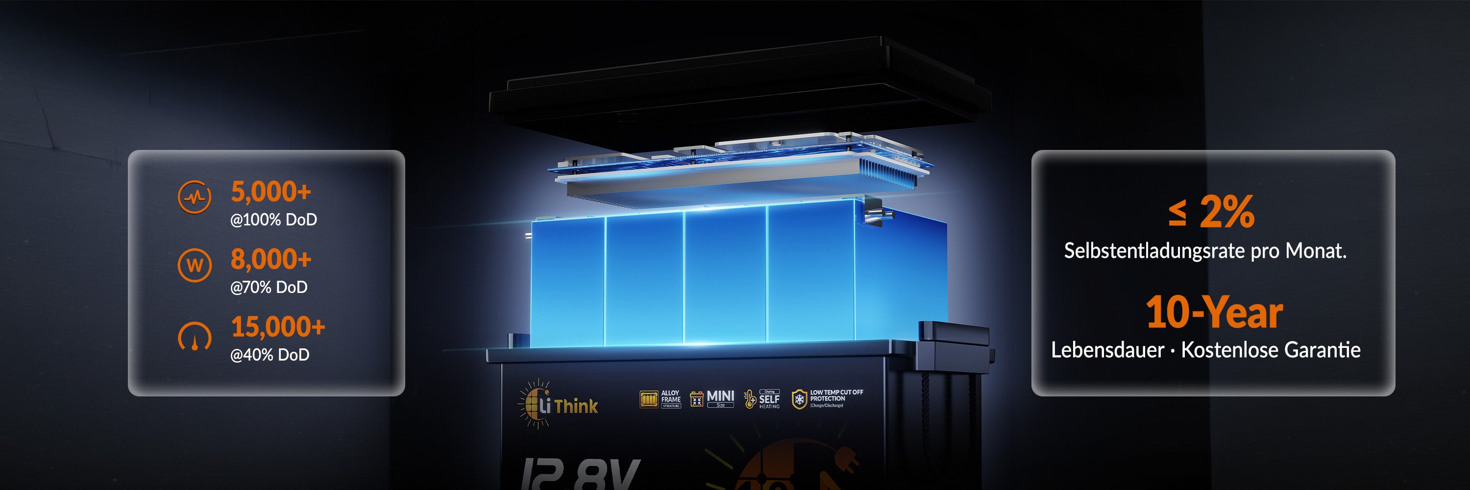 5,000+ cycles @100% DoD; 8,000+ cycles @70% DoD; 15,000+ cycles @40% DoD