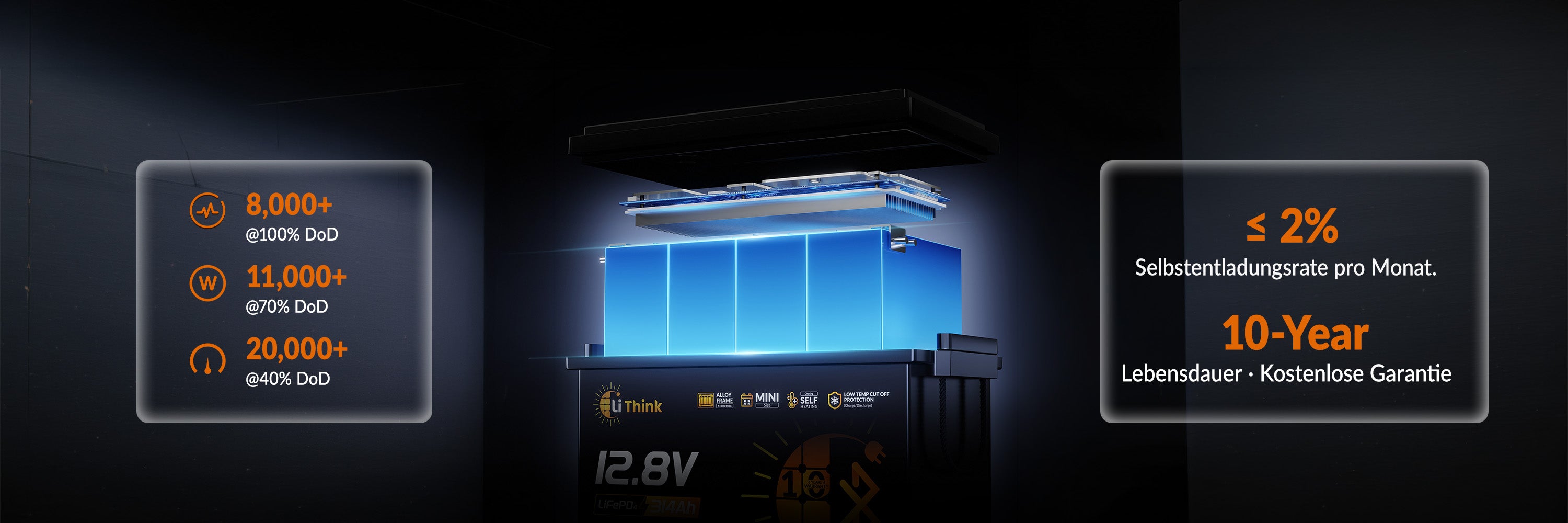8,000+ ciclos @100% DoD; 11,000+ ciclos @70% DoD; 20,000+ ciclos @40% DoD